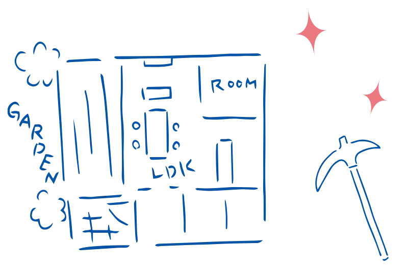 - 既存の柱を撤去して広いLDKを作ったり、大幅な間取り変更を考えることができます。