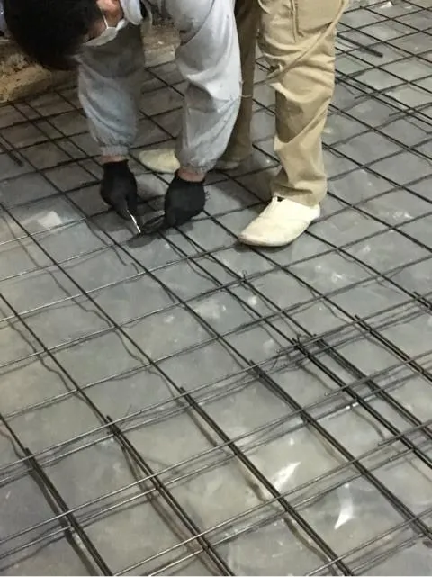 そして地面にワイヤーメッシュを敷き詰めてワイヤーメッシュ同志を結束していきます。
