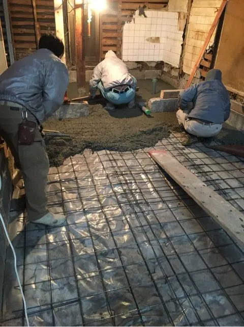 腐った構造体を入れ替え補強するなど数点のポイントがありますが、中でもベタ基礎による底面補強は重要なポイントだと考えます。