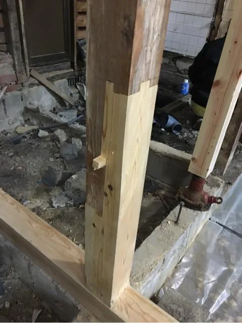 これら損傷のある柱は入れ替えたり継いだりして補強していきます。